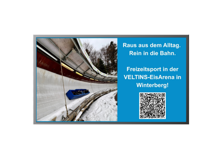 Ein Mediabox-Spot platzierte die Botschaft gezielt im öffentlichen Raum – in Stadtkernen sowie an stark frequentierten Standorten wie Arztpraxen, Banken und weiteren Alltagsorten. So erreichte die Kampagne Menschen genau dort, wo sie unterwegs sind. Inhaltlich drehte sich alles um den Ice Cube in der VELTINS-EisArena – ein außergewöhnliches Freizeiterlebnis mit IceTubes und rasanter Fahrt durch die Eisröhre.